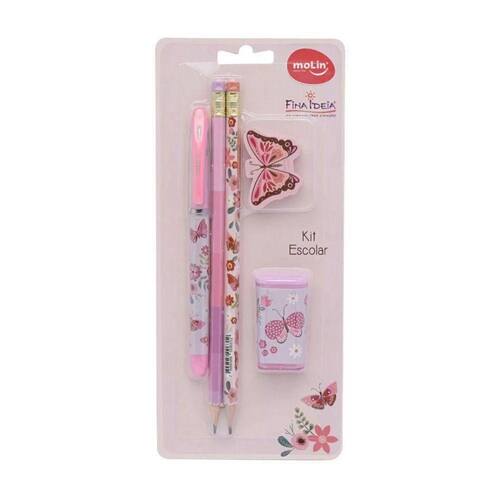 O kit que sua filha precisa para começar as aulas. Com uma linda estampa de borboletas.