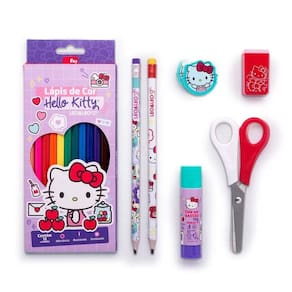 O Kit Escolar Leo&Leo Hello Kitty é a escolha perfeita para as crianças que adoram a gatinha mais fofa do mundo. Com um design divertido e colorido, o kit é composto por 7 itens essenciais para o dia a dia escolar. Características: 12 lápis de cor2 lápis grafite HB nº2 1 apontador com depósito 1 borracha 1 cola em bastão 1 tesoura