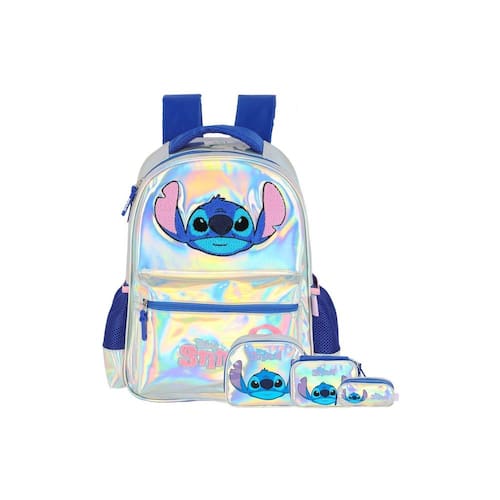 Kit Stitch Mochila Holográfica Prata + Lancheira + Estojo Box e Estojo Triplo Prepare-se para a maior aventura intergaláctica com o kit Stitch 3D prata Ideal para os fãs do alienígena mais querido da Disney, esse kit é perfeito para a escola, viagens ou simplesmente para mostrar seu amor pelo Stitch. Mochila Costas: Design 3D: A estampa do rosto do Stitch em 3D prata salta aos olhos e deixa qualquer criança encantada. Conforto e praticidade: Alças de costas ajustáveis e acolchoadas para um transporte confortável e alça de mão Organização: Bolso lateral para garrafa de água e compartimento principal espaçoso para guardar todos os materiais escolares. Durabilidade: Confeccionada em material resistente, garantindo longa vida útil. Lancheira Térmica: Tecnologia térmica: Mantém os alimentos e bebidas na temperatura ideal por mais tempo, garantindo lanches fresquinhos e saborosos. Versatilidade: Alça de costas ajustável para carregar como mochila ou encaixe para fixar em mochila de rodinhas. Design moderno: Estampa do Stitch em prata combinando com a mochila, além de detalhes modernos e divertidos. Estojo Box