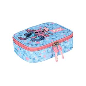 Kit estojo box + estojo triplo stitch & angel - floral azul e rosa, grande e super confortável o kit stitch & angel é perfeita para quem quer estilo, praticidade e conforto na volta às aulas. Com design floral delicado, cores suaves e os personagens mais amados da disney, ela une fofura com funcionalidade de verdade. Características do produto