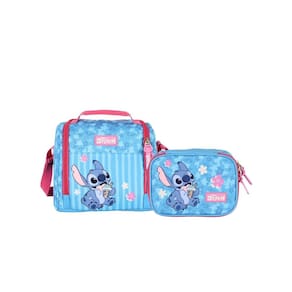 Kit lancheira térmica + estojo box stitch & angel - floral azul e rosa, grande e super confortável o kit stitch & angel é perfeita para quem quer estilo, praticidade e conforto na volta às aulas. Com design floral delicado, cores suaves e os personagens mais amados da disney, ela une fofura com funcionalidade de verdade. Características do produto Lancheira: Produzido em poliéster Frente em estampa exclusiva em alta qualidade Abertura ampla com zíper reforçado Forro térmico especial que mantém a temperatura dos alimentos Alça transversal Acabamento de alta qualidade e costuras reforçadas Material resistente e fácil de limpar Alça carona nas costas para fixação no carrinho Perfeita para lancheira escolar, passeios e viagens. Cursores personalizados