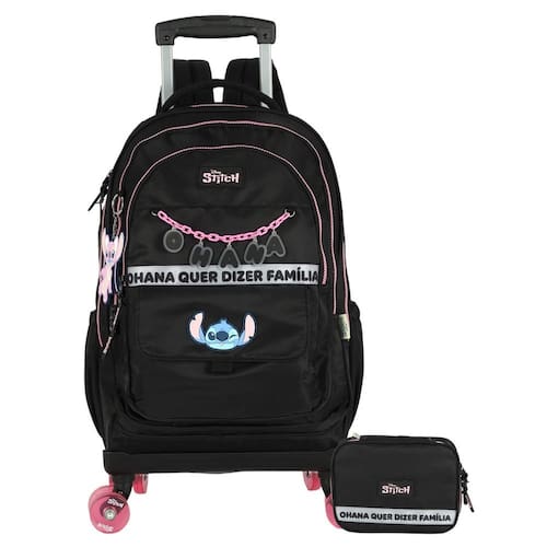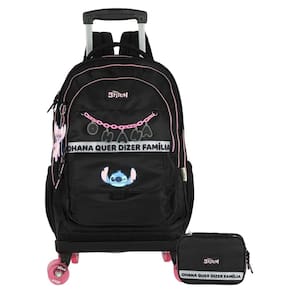 Kit Escolar Lilo Stitch Mochila 4 Roda + Estojo Box