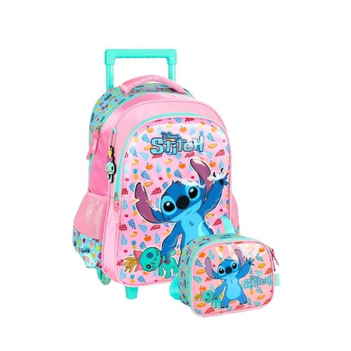 Prepare-se para uma jornada espacial cheia de diversão com o kit Lilo e Stitch Rosa Este kit completo é perfeito para as pequenas fãs da adorável Stitch e da ilha de Oahu. Com uma mochila de rodinhas espaçosa, uma lancheira térmica para manter os alimentos fresquinhos e estojos super estilosos, sua filha terá tudo o que precisa para se divertir e aprender. Características: Mochila de Rodinhas: Design moderno e divertido com a imagem da Stitch sorridente. Possui compartimentos espaçosos, bolso lateral em mesh para garrafa d'água, chaveiro acoplado com a silhueta da Stitch e rodinhas resistentes para facilitar o transporte. Lancheira Térmica: Mantém os alimentos na temperatura ideal por mais tempo, garantindo lanches fresquinhos e saborosos. Alça ajustável para o transporte nas costas e interior térmico com isolamento térmico de alta qualidade.