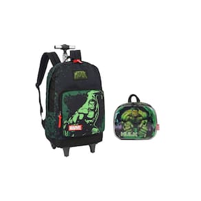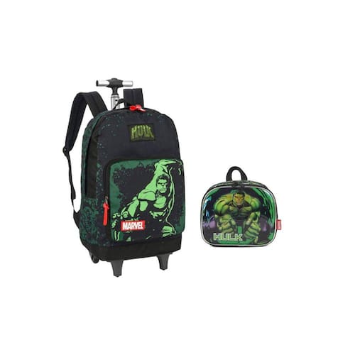 Kit Escolar Marvel Mochila Rodas e Costas + Lancheira Hulk