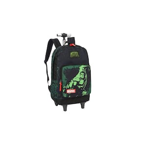 Mochila com acabamento em padrão executivo, ela tem um design marcante e discreto, mas totalmente diferenciado. Inspirada em Hulk, é uma mochila muito espaçosa e confortável de carregar. Possui alças de costas acolchoadas e 02 rodas de gel. Ideal para uso escolar, escolar em tempo integral e pequenas viagens. Medidas: Altura: 55cm Largura: 30cm Profundidade: 15cm