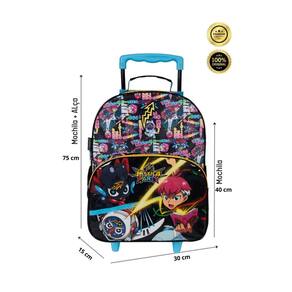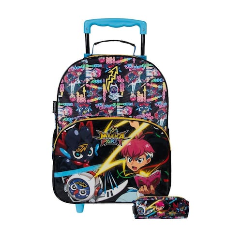 Kit Escolar Mazica Anime Mochila Rodas + Estojo Mochila com Rodas: Confeccionada em Poliéster Fechamento em zíper 2 compartimentos espaçosos 2 bolsos laterais para garrafa Possui RODAS e ALÇA DE MÃO Design exclusivo Medidas aproximadas: Altura: 40 cm Largura: 15 cm Comprimento: 30 cm Estojo simples: Confeccionado em Poliéster Fechamento em zíper 1 compartimento Design exclusivo Medidas aproximadas: Altura: 10 cm Largura: 7 cm Comprimento: 22 cm CUIDADOS: - Guarde em um local seco e arejado evitando locais úmidos. - Evite colocar excesso de peso no produto para não forçar os zíperes e costuras. - Proteja os objetos cortantes e/ou pontiagudos evitando o contato direto com o produto. - Evitar altas temperaturas. - Cores claras poderão manchar quando em contato com outros objetos ou roupas de cores pigmentadas.