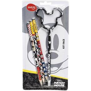 Kit Escolar Mickey 3 Lápis + 1 Caneta O Kit Escolar contém produtos 100% personalizados com imagens do personagem. Contém: - 01 caneta esferográfica com tinta na cor azul e com o topo personalizado no formato da cabeça do Mickey; - 03 lápis pretos; Ean: 7899588004196