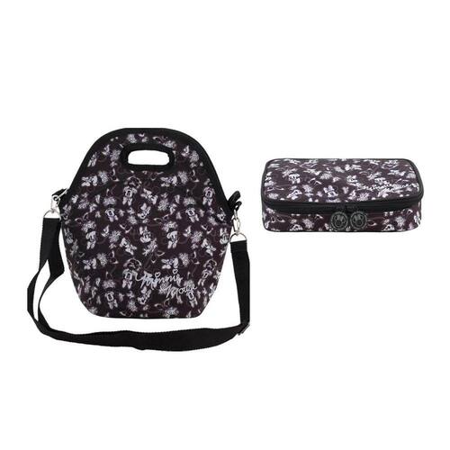Lancheira Minnie Mouse Térmica College Produzida em nylon resistente, com estampas em toda a superfície e bordado com o logotipo da personagem. Possui forro interno com material que permite manter os alimentos frescos por mais tempo. Fechamento com zíper com puxador personalizado e alças reguláveis e destacáveis. Produto Certificado pela Brics OCP 0098 No. Registro: 004773/2017 DIMENSÕES: Largura: 28.5 cm Altura: 30 cm Comprimento: 15 cm Estojo Box Minnie Mouse College Produzido em nylon resistente para te acompanhar no dia-a-dia. Possui aba com elástico para posicionar lápis e canetas e espaço amplo para armazenar os objetos. Zíper com puxador personalizado. Produto Certificado pela Brics OCP 0098 No. Registro: 004803/2017 DIMENSÕES: Largura: 22 cm Altura: 5 cm Comprimento: 14 cm