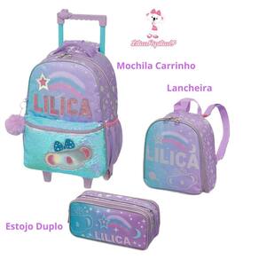Kit Escolar Mochila Carrinho Lancheira Estojo Infantil Menina Lilica Ripilica Alças Reforçada Lilás Feminina