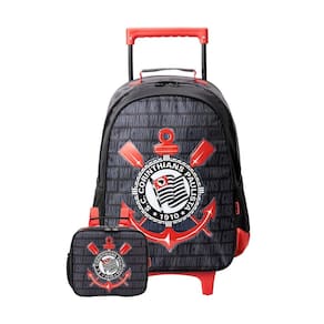 Mochila Rodinha G Escolar Corinthians: Possui RODAS RESISTENTES Confeccionada em Poliéster e PVC Possui 1 compartimentos espaçosos Fechamento em zíper REFORÇADO Dois bolsos laterais telados pra garrafa Regulador de tamanho da alça na parte traseira Puxadores personalizados Medidas: Altura: 40 cm Largura: 30 cm Profundidade: 15 cm