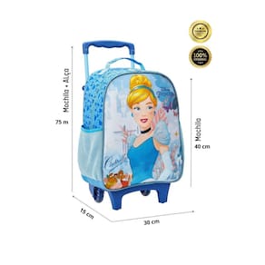 Design da Cinderela com brilho: Todos os itens possuem um design exclusivo com a personagem favorita das crianças e detalhes brilhantes que encantam. Mochila de rodinha: Facilita o transporte dos materiais escolares e proporciona mais conforto para a criança. Lancheira: Ideal para guardar lanches e bebidas. Zíper resistente: Garante maior durabilidade e segurança em todos os itens. Bolsos laterais: Ideais para guardar garrafinhas ou outros objetos pequenos. Alça de mão e de costas: Versatilidade para carregar a lancheira da forma mais confortável. Detalhes personalizados: Tornam o kit ainda mais especial e único.