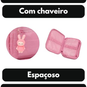 Design Encantador: Apresenta cores suaves em tons de rosa, lilás e azul, complementadas por um adorável chaveiro coelhinho de pelúcia, que adiciona um toque irresistível de fofura e personalidade.