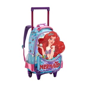 Mochila de Rodinha e Costas 2em1 Sereia Mar Produzido em poliéster 1 divisão grande 2 bolsos laterais em redinha Alças acolchoadas de Costas Alça de carrinho com 02 rodinhas 1 bolso frontal Ziperes com puxadores personalizados Estampa estilizada Dimensões: 40 x 29 x 13 cm alt x larg x prof ; Lancheira Térmica Sereia Fundo do Mar Produzido em poliéster Possui alças de costas Material interno térmico Ziperes com puxadores personalizados Estampa estilizada Não acompanha potinho e garrafinha Dimensões: 22 x 20 x 8cm alt x larg x prof ; Estojo sereia Fundo do Mar 02 compartimentos Dimensões: 15 x 21 x6 cm CUIDADOS: - Guarde em um local seco e arejado evitando locais úmidos. - Evite colocar excesso de peso no produto para não forçar os zíperes e costuras. - Proteja os objetos cortantes e/ou pontiagudos evitando o contato direto com o produto. - Evitar altas temperaturas. - Cores claras poderão manchar quando em contato com outros objetos ou roupas de cores pigmentadas.