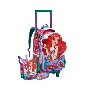 Mochila de Rodinha e Costas 2em1 Sereia Mar Produzido em poliéster 1 divisão grande 2 bolsos laterais em redinha Alças acolchoadas de Costas Alça de carrinho com 02 rodinhas 1 bolso frontal Ziperes com puxadores personalizados Estampa estilizada Dimensões: 40 x 29 x 13 cm alt x larg x prof ; Lancheira Térmica Sereia Fundo do Mar Produzido em poliéster Possui alças de costas Material interno térmico Ziperes com puxadores personalizados Estampa estilizada Não acompanha potinho e garrafinha Dimensões: 22 x 20 x 8cm alt x larg x prof ; Estojo sereia Fundo do Mar 02 compartimentos Dimensões: 15 x 21 x6 cm CUIDADOS: - Guarde em um local seco e arejado evitando locais úmidos. - Evite colocar excesso de peso no produto para não forçar os zíperes e costuras. - Proteja os objetos cortantes e/ou pontiagudos evitando o contato direto com o produto. - Evitar altas temperaturas. - Cores claras poderão manchar quando em contato com outros objetos ou roupas de cores pigmentadas.