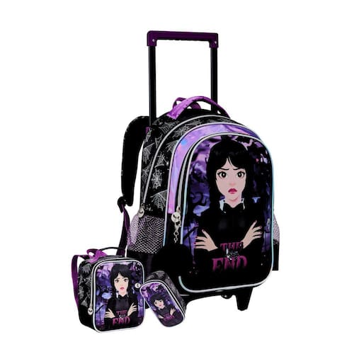 Produzido em poliéster 1 divisão grande 2 bolsos laterais em redinha Alças acolchoadas de Costas 1 bolso frontal Ziperes com puxadores personalizados Estampa estilizada Dimensões: 40 x 29 x 13 cm alt x larg x prof ; Alça fechada Altura: 47cm Largura: 30cm Alça aberta Altura: 75cm Largura: 30cm Lancheira Térmica Menina Wandinha Produzido em poliéster Possui alças de costas Material interno térmico Ziperes com puxadores personalizados Estampa estilizada Não acompanha potinho e garrafinha Dimensões: 22 x 20 x 8cm alt x larg x prof ; Estojo wandinha 01 compartimento Cursor personalizado Grande e espaçoso Costura reforçada Dimensões: 23x09x08 CUIDADOS: - Guarde em um local seco e arejado evitando locais úmidos. - Evite colocar excesso de peso no produto para não forçar os zíperes e costuras. - Proteja os objetos cortantes e/ou pontiagudos evitando o contato direto com o produto. - Evitar altas temperaturas. - Cores claras poderão manchar quando em contato com outros objetos ou roupas de cores pigmentadas.
