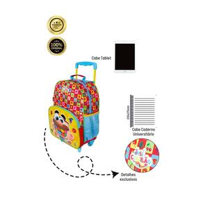 Kit Escolar Mochila De Rodas + Lancheira Térmica José Comilão Mochila de Rodinha: Confeccionada em Poliéster Fechamento em zíper 2 compartimentos espaçosos 2 bolsos laterais para garrafa Possui RODAS e ALÇA DE MÃO Design exclusivo Medidas aproximadas: Altura: 40 cm Largura: 15 cm Comprimento: 30 cm