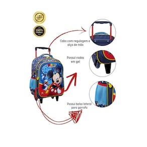 Leve a alegria do Mickey Mouse para a rotina escolar com este kit completo e cheio de estilo Ideal para os pequenos fãs do rato mais famoso do mundo, a mochila com rodinhas e o estojo duplo vão fazer a alegria da criançada.