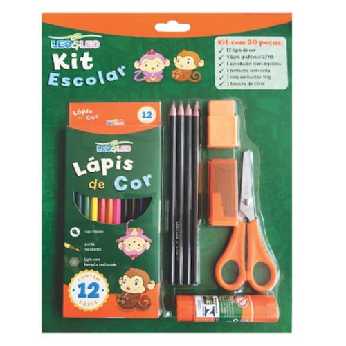 Informações do Produto: . Conteúdo da Embalagem: 12 Lápis de cor , 4 Lápis Grafite , 1 Apontador com Depósito, 1 Borracha com Cinta, 1 Cola Bastão 10g e 1 Tesoura de 13 cm . Formato do Lápis: Sextavado . Ponta Resiste . Total de 20 Peças . Marca: Leo & Leo . Código de Barras: 7897256242031 . Certificado INMETRO/ANVISA: ocp 0116 . Dimensões da Embalagem: C31xL24xA3 cm . Peso: 235g Ean: 7897256242031
