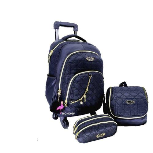 Kit mochila feminina rodinhas 360 da Michele Hobbs, é uma excelente opção para utilizar no dia a dia, possui Rodinhas que giram em 360 graus, lancheira e estojo. Além de toda a qualidade já reconhecida de Michele Hobbs, possui um design muito bonito, material confortável e resistente e amplo espaço interno para manter os Materiais de forma organizada.