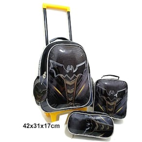 Kit Escolar Rodinha Bat Dl1379 Mochila De Roda- Compartimento principal com ziper duplo- Bolsos laterais em tela e elastico- Frente Personagem- 2 rodas de silicone super deslizantes- Pés de apoio e descanso- Puxador em aluminio leve e regulavel na altura da criança- Alças acolchoadas, reforçadas e ajustaveis- Tamnho em cm AxLxP 42x31x17 Lancheira TermicaEstojo escolar Na Ello Comércio você encontra a Mochila certa pro seu filho. Veja este modelo no insta ellocomercio