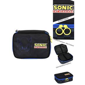 Estampa do sonic em alta definição Material resistente, durável e fácil de limpar Divisões internas com elástico para melhor organização de lápis, canetas e acessórios Fechamento em zíper duplo reforçado Cursores personalizados Comporta até 100 lapis ou canetas Dimensões aproximadas