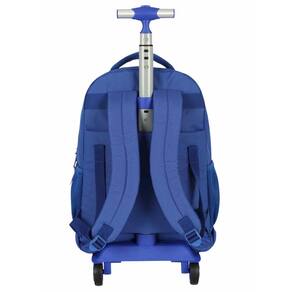 Características do produto Mochila de rodinha: Duplo compartimento Zíper resistente de alta qualidade tratorado Frente com estampa exclusiva Rodinhas silenciosas e resistentes Base rígida reforçada emborrachada Alça retrátil em alumínio Alças acolchoadas e confortáveis Bolso frontal amplo Fechamento em zíper com puxadores personalizados Laterais com bolso para garrafa em mesh Material durável Modelagem leve e espaçosa Logo emborrachado Chaveiro exclusivo Dimensões aproximadas