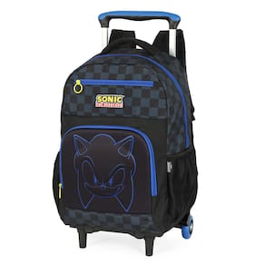 Mochila de Rodinha Sonic Estampa exclusiva com o rosto do Sonic em detalhe azul neon. Estrutura reforçada com rodinhas resistentes e alça retrátil para facilitar o transporte. Bolsos laterais em tela + amplo espaço interno. Puxadores de zíper personalizados em formato de anel dourado.
