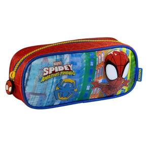 2. Estojo escolar Spidey – ideal para guardar lápis, canetinhas e muita imaginação com o charme do universo Marvel! -frente em pvc patch com espuma; -puxadores emborrachados personalizados; -zíper tratorado; -material: poliéster.
