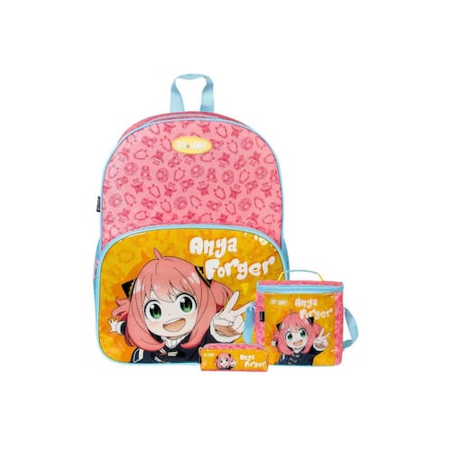 Kit Escolar Spy Family Mochila De Costas + Lancheira Térmica + Estojo Simples Confeccionada em Poliéster Alças de costas reguláveis e alça de mão 2 compartimentos espaçosos 2 bolsos laterais para garrafa Design exclusivo Fechamento em zíper Medidas aproximadas: Altura: 40 cm Largura: 15 cm Comprimento: 30 cm