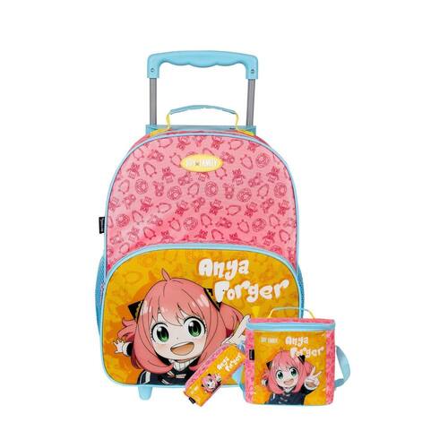 Kit Escolar Spy Family Mochila De Rodas + Lancheira Térmica + Estojo Simples Mochila de Rodinha: Confeccionada em Poliéster Fechamento em zíper 2 compartimentos espaçosos 2 bolsos laterais para garrafa Possui RODAS e ALÇA DE MÃO Design exclusivo Medidas aproximadas: Altura: 40 cm Largura: 15 cm Comprimento: 30 cm