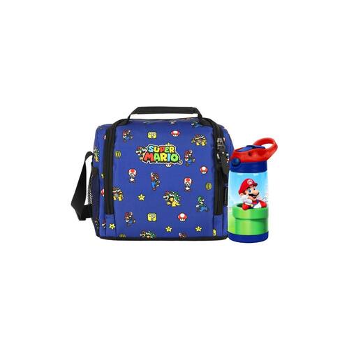 Kit Super Mario Lancheira Térmica+Garrafa Lancheira Térmica Escolar Super Mario Bross Confeccionada em Poliéster Grande e espaçosa Forro térmico Possui Alça transversal e de mão dupla Zíper de alta qualidade Medidas: Altura: 20 cm Largura: 22 cm Profundidade: 13 cm