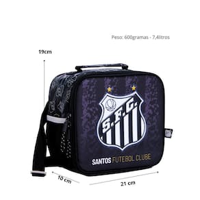 Lancheira térmica merendeira santos futebol clube Para quem quer manter o lanche fresquinho e organizado com muito estilo, a lancheira santos da xeryus é a escolha certa Características principais: - forro interno em peva, que mantém os alimentos fresquinhos por muito mais tempo. - compartimento principal amplo com elástico interno para melhor organização dos itens. - bolso lateral em tela para garrafa, sempre à mão para garantir a hidratação. - alça regulável para conforto no transporte e tira especial para encaixe seguro no carrinho da mochila. - design esportivo com estampa exclusiva e logo em patch de pvc vincado que representa toda a paixão pelo peixe. - zíper resistente com puxadores em corda para facilitar a abertura e o fechamento. Perfeita para acompanhar o ritmo da escola com praticidade, conforto e muita personalidade Dimensões: - largura: 21cm - altura: 19cm - comprimento: 10cm Peso: 200gr Cuidados: - guarde em um local seco e arejado evitando locais úmidos. - evite colocar excesso de peso no produto para não forçar os zíperes e costuras. - proteja os objetos cortantes e/ou pontiagudos evitando o contato direto com o produto. - evitar altas temperaturas. - cores claras poderão manchar quando em contato com outros objetos ou roupas de cores pigmentadas.