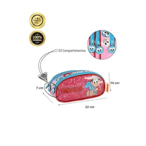 Kit Escolar Turma da Monica Lancheira Térmica + Estojo Triplo Lancheira: Confeccionada em Poliéster Isolamento térmico Alça de mão e de costas Alça que prende na mochila de rodinhas Design exclusivo Puxadores personalizados Fechamento em zíper Medidas aproximadas: Altura: 18 cm Largura: 8 cm Comprimento: 22 cm
