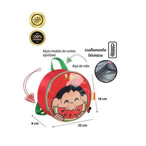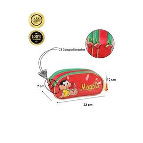 Kit Escolar Turma da Monica Lancheira Térmica + Estojo Triplo Lancheira: Confeccionada em Poliéster Isolamento térmico Alça de mão e de costas Alça que prende na mochila de rodinhas Design exclusivo Puxadores personalizados Fechamento em zíper Medidas aproximadas: Altura: 18 cm Largura: 8 cm Comprimento: 22 cm