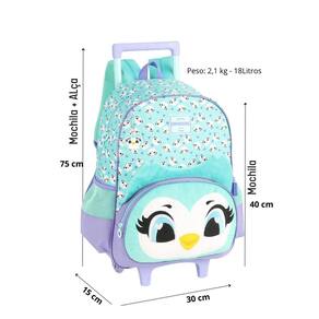 Mochila com Rodas: Confeccionada em Poliéster Fechamento em zíper Puxadores personalizados Compartimentos espaçosos 2 bolsos laterais para garrafa Possui RODAS e ALÇA DE MÃO Design exclusivo Etiqueta de identificação na parte traseira Medidas aproximadas: Altura Mochila+Alça : 75 cm Altura Mochila : 40 cm Largura: 15 cm Comprimento: 30 cm