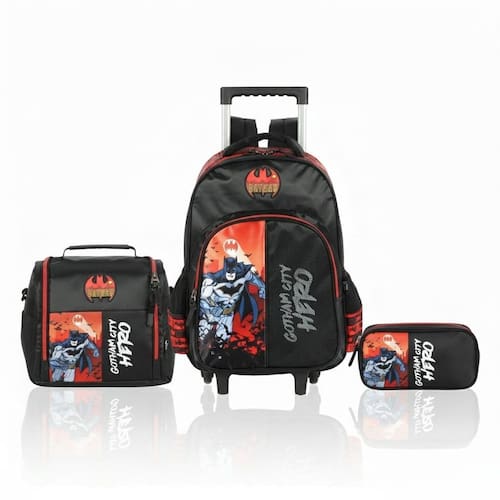 Kit Escolar Vermelho Batman Mochila+Estojo Box+ Lancheira