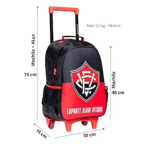 Para os pequenos torcedores que querem carregar seus sonhos com muito estilo, a mala escolar com rodas 16 vitória e.C. É a escolha perfeita design esportivo e funcionalidade que acompanham o ritmo da rotina escolar com muita energia. Destaques que fazem toda a diferença: - alças acolchoadas e ajustáveis que garantem conforto e encaixe perfeito nas costas. - protetor de hastes acolchoados para as costas, permitindo diferentes formas de uso deste modelo - no chão com as rodinhas ou nas costas. - frente em poliéster sublimado com estampa exclusiva e logo em patch de pvc vincado, garantindo resistência e um visual vibrante e moderno. - rodas em gel que proporcionam deslize suave, silencioso e estabilidade em qualquer superfície. - hastes achatadas com sistema de auto regulagem, que ajustam facilmente a altura para o conforto ideal. - zíper bicolor com dentes de nylon super resistentes, que unem durabilidade e estilo. - puxadores em corda que facilitam a pegada, garantindo praticidade no uso diário. - cobre zíper que protege e aumenta a durabilidade do fechamento. - bolsos laterais em tela para garrafa, trazendo praticidade e organização. - estampa e forro personalizados, reforçando a exclusividade da linha do rubro-negro baiano. Essa mala é o companheiro ideal para levar tudo o que você precisa, com conforto, estilo e qualidade inconfundíveis. Dimensões: - largura: 30cm - altura: 40cm - comprimento: 15cm Peso: 1100gr