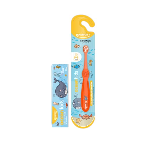 Kit Primeiros Passos Ocean Kids: Escova e Gel Dental para Sorrisos Radiantes Cuide do sorriso do seu pequeno com este kit completo e seguro, ideal para a higiene bucal dos primeiros dentinhos (1 a 3 anos):