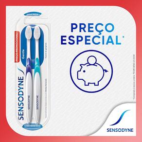 A Escova Dental Sensodyne Gentle Extra Macia foi especialmente desenvolvida para quem sofre com dentes sensíveis. Suas cerdas extra macias proporcionam uma limpeza eficaz e, ao mesmo tempo, extremamente suave, cuidando tanto dos dentes quanto das gengivas. Com um design inteligente, suas cerdas são densas na base, removendo a placa bacteriana com eficiência, enquanto as pontas finas e afuniladas garantem uma limpeza delicada nas áreas próximas à gengiva, ajudando a prevenir desconfortos e irritações. Benefícios:• Cerdas extra macias, ideal para dentes sensíveis.• Limpeza eficaz e delicada, sem agredir o esmalte ou a gengiva.• Suave com as gengivas, ajudando a prevenir recessões gengivais.• Design ergonômico, confortável e fácil de manusear.• Kit promocional com 2 unidades, oferecendo mais economia. Recomendações de uso:• Indicado para adultos e crianças acima de 6 anos (sob supervisão).• Crianças menores devem ser acompanhadas durante a escovação.• Não permita que as cerdas ou a escova sejam mastigadas.• Troque sua escova dental a cada 3 meses ou conforme recomendação do seu dentista. Sobre a Marca: A Sensodyne é uma marca de creme dental, enxaguante bucal e outros produtos de higiene bucal, projetada para pessoas com dentes sensíveis. É a marca mais vendida no mundo para dentes sensíveis, recomendada por dentistas e com a confiança de milhões de pessoas. Os produtos Sensodyne são formulados para aliviar a dor causada pela sensibilidade dentária, oferecendo proteção duradoura contra a hipersensibilidade dentinária. • Cuidado suave para seus dentes e gengivas, com a proteção e eficiência que você merece todos os dias!