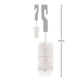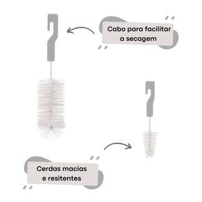 Kit Escova Para Mamadeira e Bico Cerdas Macias - Buba Cor: Cinza Pare de sofrer para limpar a mamadeira de seu bebê, com o Kit Escova da Buba será muito mais fácil, pois alcança áreas de difíces limpeza, além de uma escovinha para higienizar o bico da mamadeira com cerdas macias e resitentes.