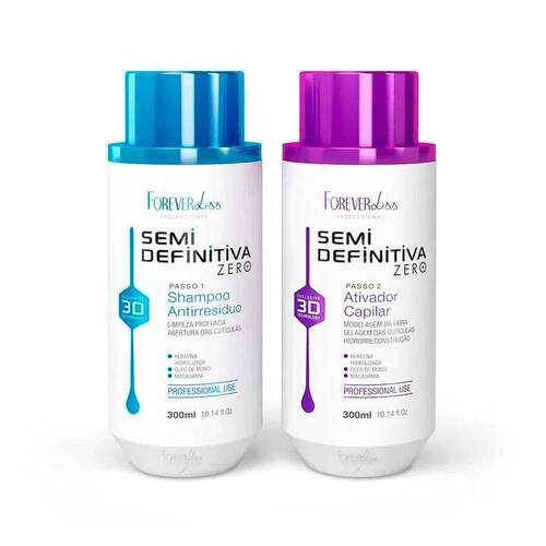 A Escova Semi Definitiva Forever Liss é adorada e desejada entre os da beleza: Sua tecnologia única no mercado, desenvolvida pela Forever Liss Professional® - a "Hair System Premium 3D" - é considerada uma das melhores do mundo e proporciona reestruturação capilar com total segurança, sem danificar e agredir os fios, nem exalar cheiros fortes, como nas progressivas. O Shampoo da Escova Definitiva limpa profundamente os cabelos, removendo as impurezas de produtos acumulados na fibra capilar, deixando os fios extremamente higienizados, com abertura das cutículas, prontos para receberem o tratamento. O Ativador Capilar Semi Definitivo foi desenvolvido para proporcionar nutrição e redução do frizz. Promove disciplina e reestrutura internamente os fios, dando brilho e movimento aos cabelos. Sua fórmula exclusiva com Queratina Hidrolisada, Óleo de Monoi e Macadâmia proporciona maciez e brilho incríveis. Age na reconstrução da fibra capilar, e promove nova vida aos cabelos, deixando-os alinhados e hidratados.