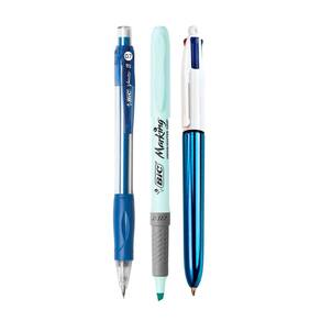 Com este Kit, você tem tudo o que precisa para destacar suas anotações! Você pode diversificar sua escrita com as cores clássicas (preto, vermelho, verde e azul) oferecidas pela Caneta 4 Cores, pelo destaque em amarelo do Marca Texto e pelo clássico grafite da Lapiseira. A clássica Caneta de 4 Cores possui uma escrita média com ponta de 1.0mm, enquanto o Marca Texto tem uma ponta chanfrada e a Lapiseira uma escrita mais fina, com ponta de 0,7mm.