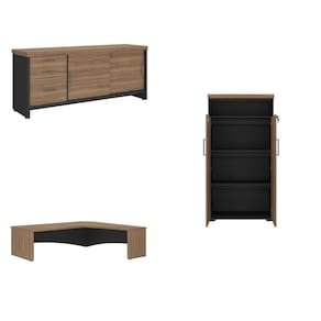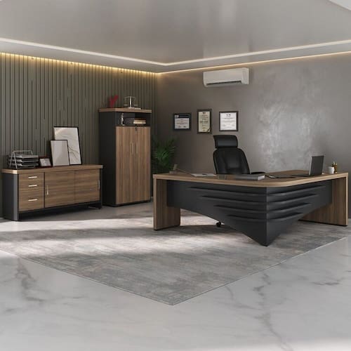 Transforme seu ambiente de trabalho com este kit para escritório, essencial para unir eficiência e estilo. O conjunto inclui uma elegante Mesa Diretor em L de Tamburato, projetada para oferecer amplo espaço e sofisticação; um Balcão com Gavetas, portas e Prateleiras, perfeito para organizar documentos e itens essenciais com praticidade; e um Armário Multiuso, que amplia a funcionalidade e mantém tudo sempre ao alcance. Cada peça é produzida com materiais de alta qualidade e acabamento impecável, garantindo durabilidade e um visual moderno. Invista na combinação perfeita de praticidade e elegância e eleve o padrão do seu escritório. Seja você um empresário, advogado, médico ou profissional liberal, seu espaço profissional merece esse upgrade! Acabamento: BP Altura do Conjunto: 173 cm Ambiente: null Ambiente Principal: Escritório Cor: Nogal/Preto Informação Complementar: 1x Mesa Diretor para Escritório em L em Tamburato 5 Cm Ld Nogal/Preto Largura: 200 cm Altura: 75 cm Peso: 89 kg Profundidade: 180 cm Necessita Montagem: Sim