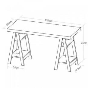 1x Escrivaninha Moderna com Pés Cavalete em Tamburato 50mm Art Olmo/Branca Largura: 135 cm Altura: 75 cm Peso: 26,7 kg Profundidade: 60 cm Necessita Montagem: Sim