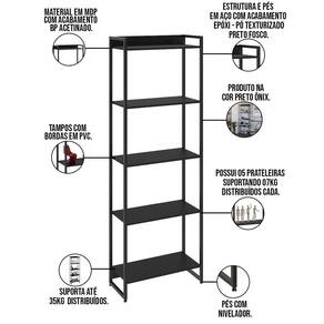 Kit Escritório Estante Areta 5 Prateleiras Com Mesa Industrial Aspen 150cm C01 Onix - Lyam Decor