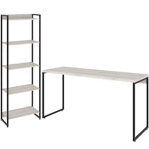 Kit Escritório Estante Areta 5 Prateleiras Com Mesa Industrial Aspen 150cm C01 Snow - Lyam Decor