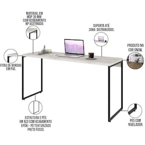 Com o Kit Escritório Estante Areta 5 Prateleiras com Mesa Industrial Aspen 150cm C01 Snow - Lyam Decor, o conceito industrial ficará evidente no seu ambiente, tornando o mesmo muito mais moderno, sofisticado e organizado, garantindo isso com 05 prateleiras que deixam tudo prático e funcional. Uma característica muito forte dos móveis industriais é a união do tubular de estrutura exposta com a madeira, que dão todo o charme para agregar no estilo que está entre os mais buscados no ramo de arquitetura e decoração. Dimensões da Estante (L x A x P) 60 x 186 x 30 cm Medidas Internas: Altura da prateleira: 39,7 cm Largura da prateleira: 56 cm Dimensões da Mesa (L x A x P) 150 x 75 x 50 cm Características da Estante: 05 prateleiras produzidas em MDP, com acabamento em BP acetinado. Pés em tubo de aço com sapatas niveladoras e acabamento em pintura texturizada epóxi, responsável por criar alta resistência á umidade e produtos químicos, facilitando também na limpeza e manutenção. Fita de borda em PVC. Solda com acabamento suavizado. Produto na cor Snow. Suporta até 7 kg por prateleira. Características da Mesa: Tampo produzido em MDP, com acabamento em BP acetinado. Pés em tubo de aço niveladoras e acabamento em pintura texturizada epóxi, responsável por criar alta resistência á umidade e produtos químicos, facilitando também na limpeza e manutenção. Fita de borda em PVC. Solda com acabamento suavizado. Produto na cor Snow. Suporta até 30 kg. Produto entregue desmontado, acompanha manual de montagem. Para a limpeza, utilize flanela seca. Evite contato com produtos químicos (solventes, thinner, acetona, etc) e não utilize nenhum tipo de esponja de aço. Observações importantes: A montagem será de responsabilidade do comprador; Responsabilizamo-nos pela entrega em todo território nacional, até onde as rodovias alcançam, entregas fluviais ou aéreas devem ser cotadas a parte; As imagens são ilustrativas, não acompanham objetos de decoração e eletrônicos; Não nos responsabilizamos, no ato da entrega, por subir escadas/elevadores ou transporte por guincho em apartamentos. Eventuais despesas são de responsabilidade do comprador; Confira as dimensões do produto e certifique-se de que passará normalmente por supostos elevadores, portas, escadas e/ou corredores de sua residência; NA