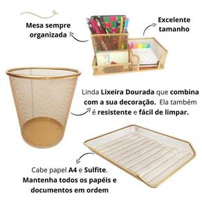 Kit escritório lixeira, organizador de mesa, bandeja organizadora dourado ouro Kit escritório lixeira, organizador de mesa, bandeja organizadora dourado ouro