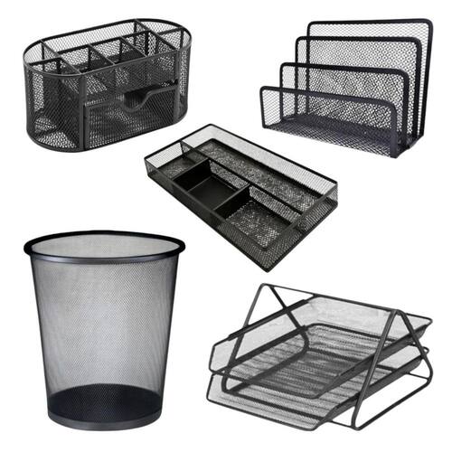 Kit Organizadores de Escritório em Metal - Bandejas, Cestos e Suportes Multiuso