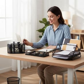 Kit Organizadores de Escritório em Metal - Bandejas, Cestos e Suportes Multiuso
